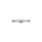 Bague en platine ornée d’un diamant central de 0,50 ct (taille brillant, G-VS2) accompagné de 10 diamants totalisant 0,10 ct, certifiée pour authenticité.