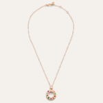 Collier réversible avec pendentif en or rose 18 carats orné de 2 saphirs roses (≈0,1 ct), 1 saphir orange traité (≈0,1 ct), 1 tsavorite (≈0,1 ct), 1 améthyste (≈0,05 ct), 1 rubis (≈0,05 ct), 1 émeraude (≈0,05 ct), 1 saphir bleu (≈0,05 ct) et 1 zircon (≈0,05 ct).
