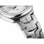 Une superbe édition à quartz de la Link Lady, très féminine, sertie de diamants (0,116 ct), avec un cadran en nacre blanche. Le boîtier élancé de 32 mm en acier inoxydable satiné et poli est assorti à une lunette en acier poli et au bracelet à maillons en forme de S emblématique.