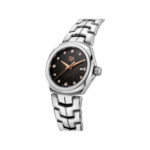 Le glamour et l'élégance fusionnent dans cette TAG Heuer Link de 32 mm. Outre son bracelet iconique à maillons en forme de S, cette montre possède un cadran noir scintillant avec des index munis de diamants (0, 158 ct). Le logo TAG Heuer, ainsi que les aiguilles, sont plaqués or rose (5N).