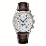 Fonctions du chronographe : Mécanisme du chronographe : aiguille centrale 60 secondes, compteur 12 heures avec affichage des phases de la lune 6h, compteur 30 minutes avec affichage du jour et du mois à 12h