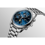 Fonctions du chronographe : Mécanisme du chronographe : aiguille centrale 60 secondes, compteur 12 heures avec affichage des phases de la lune 6h, compteur 30 minutes avec affichage du jour et du mois à 12h