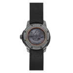 Cadran : Cadran de couleur noire – finition grenée – décalques blanches-oranges – chiffres arabes et index revêtus de Super-LumiNova