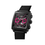 Entrez dans un monde d'innovation audacieuse avec cette TAG Heuer Monaco avant-gardiste. Véritable classique remis au goût du jour, cette montre allie un rose vif à un noir épuré dans un design squeletté saisissant, incarnant l'esprit audacieux des pionniers d'aujourd'hui.