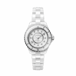Bracelet : Bracelet en céramique haute résistance blanche, boucle triple déployante en acier