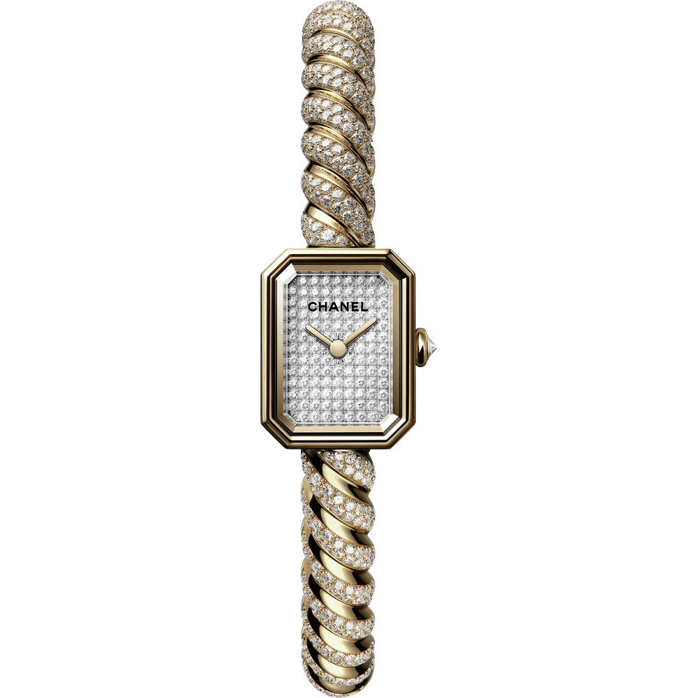 Or jaune et diamants, cadran en or blanc et bracelet en or jaune sertis de diamants