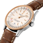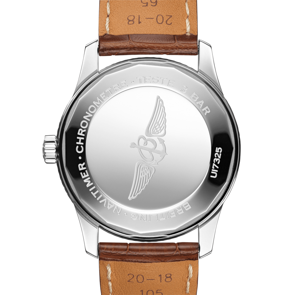 Disponible dans un large éventail de matières, acier inoxydable et or rouge 18 carats inclus, le boîtier de 38 mm est équipé d’une lunette perlée et d’un éventail d’élégants cadrans noirs, bleus ou argent. Proposée avec un bracelet correspondant ou avec un bracelet en cuir d’alligator noir, bleu ou doré assorti aussi bien à une boucle ardillon en acier inoxydable que déployante, la Navitimer Automatic 38 est animée par le Calibre Breitling 17, un chronomètre certifié COSC.