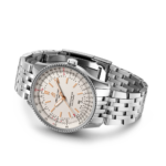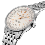 Disponible dans un large éventail de matières, acier inoxydable et or rouge 18 carats inclus, le boîtier de 41 mm est équipé d’une lunette perlée et d’un éventail d’élégants cadrans noirs, anthracites, bleus ou argent. Proposée avec un bracelet correspondant, ou avec un bracelet en cuir d’alligator noir, bleu ou marron assorti aussi bien à une boucle ardillon en acier inoxydable que déployante, la Navitimer Automatic 41 est animée par le Calibre Breitling 17, un chronomètre certifié COSC.