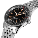 Disponible dans un large éventail de matières, acier inoxydable et or rouge 18 carats inclus, le boîtier de 41 mm est équipé d’une lunette perlée et d’un éventail d’élégants cadrans noirs, anthracites, bleus ou argent. Proposée avec un bracelet correspondant, ou avec un bracelet en cuir d’alligator noir, bleu ou marron assorti aussi bien à une boucle ardillon en acier inoxydable que déployante, la Navitimer Automatic 41 est animée par le Calibre Breitling 17, un chronomètre certifié COSC.