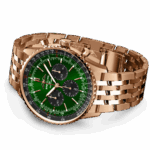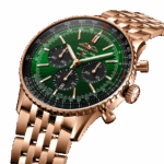 Depuis son lancement 70 ans plus tôt, de nombreux exemplaires de l’icône de Breitling sont apparus, mais cette nouvelle Navitimer reprend ses caractéristiques les plus emblématiques, tout en y apportant quelques retouches modernes. Une règle à calcul aplanie et un verre bombé créent l’illusion d’un profile plus élancé. Alterner des éléments métalliques polis et brossés donne une finition à la fois brillante et sobre. De nouvelles couleurs dans des teintes de bleu, de vert et de cuivre, définissent plus particulièrement les choix de cadrans modernisés. Enfin, s’il y a une nouvelle singularité qui suscite la nostalgie, c’est bien le retour des ailes de l’AOPA sur leur position initiale à 12 heures.