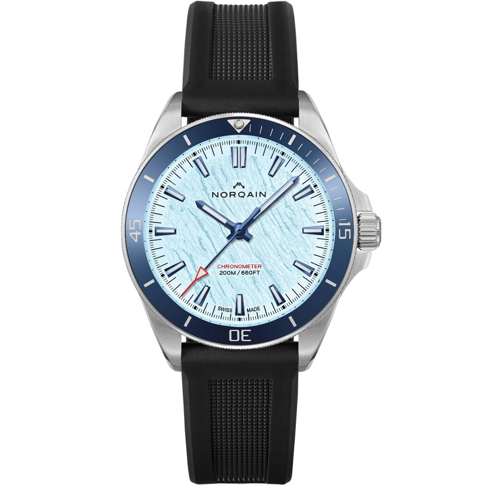 Cadran bleu glace avec fissures inspirées des crevasses du Mont Everest