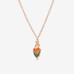 Déclaration d’amour à la beauté de la nature tropicale, le pendentif Perroquet en or rose 9 K et émail nacré posé à la main se distingue par ses plumes multicolores.