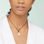 Pendentif pièce de monnaie en or rose 9K. Cordon noir inclus.
