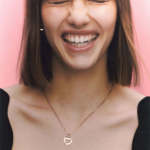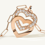 Pendentif sur chaîne Double Cœurs très grand modèle en or rose 18 carats et serti de diamants.