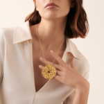 Le pendentif Pi 50mm est proposé sur une chaîne boule en or jaune 18 carats. Véritable signature de la Maison, ce disque d'or est martelé à la main rendant chaque pièce est unique.