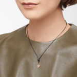 Pendentif trèfle à quatre feuilles en or rose 9K avec 13 diamants cognac (0,15 ct) - petit modèle. Cordon noir inclus.
