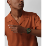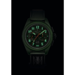La montre PILOT Big Date Flyback Porter en édition limitée est logée dans un boîtier en céramique vert kaki de 42,5 mm rehaussé d’une couronne surdimensionnée, et dotée d’un cadran vert kaki ondulé arborant de grands chiffres arabes luminescents. Elle est animée par le calibre de chronographe automatique à haute fréquence El Primero 3652 avec les fonctions grande date et retour en vol.Pour parachever le look, la PILOT Big Date Flyback PORTER Edition est livrée avec deux bracelets. Le premier, en nylon durable fourni par PORTER, est de couleur kaki avec des éléments en Velcro orange et le logo PORTER en surpiqûre. Le deuxième en caoutchouc kaki à effet Cordura.
