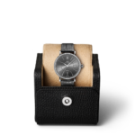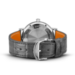 Boîtier en Acier fin , Remontage automatique, Diamètre 37.0 mm, Bracelet en alligator gris de Santoni, Largeur du bracelet 18.0 mm.