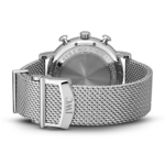 Le bracelet souple à maille milanaise en acier fin souligne le caractère italien et l’apparence élégante de ce classique intemporel du design.