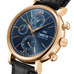 Pour la première fois, la Portofino Chronographe est disponible avec un boîtier en or rouge 750/1000 et un cadran bleu.