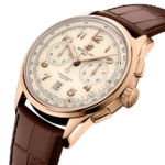 Pour créer sa collection moderne Premier, Breitling a conservé les signes distinctifs de l’ancienne collection, à savoir une lunette lisse fixe, un cadran à deux compteurs, des poussoirs rectangulaires épurés et les chiffres arabes. Le Premier B01 Chronograph 42 est disponible dans un large éventail de couleurs de cadran et de matériaux de boîtier. Il est proposé sur un bracelet en cuir d’alligator classique ou un bracelet élégant à 7 rangs en métal. Le modèle Premier actuel respecte également les normes techniques exigeantes de Willy Breitling avec son mouvement à remontage automatique exceptionnel – le calibre Manufacture Breitling 01 certifié COSC – conçu pour une précision, une fiabilité et une fonctionnalité maximales.