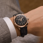 La Duograph est proposée en deux versions : en acier inoxydable avec un cadran bleu et un bracelet en cuir d’alligator brun doré ou en or rouge 18 carats avec un cadran noir et un bracelet en cuir d’alligator noir.