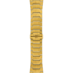 Cette version de la Tissot PRX est dotée d'un boîtier en acier inoxydable 316L avec revêtement PVD or jaune, d'un cadran et d'index brossés soleil en or jaune et d'un bracelet en acier inoxydable 316L avec revêtement PVD or jaune avec fermoir papillon à poussoirs.