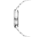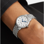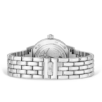 Avec son bracelet à maillons souples en acier, la Rendez-Vous Date s’accorde une allure contemporaine. Fidèle aux codes de la collection, la montre à quartz délivre ses fonctions de manière élégante et raffinée. Sur son cadran argenté à la double finition guillochée soleillée, se détachent les aiguilles florales et la minuterie dont les points en décalque viennent souligner les chiffres des heures. Dans un guichet à 6h, apparaît la complication de la date en typographie florale, emblématique de la collection, avec les chiffres pairs sobrement indiqués par un petit point. La lunette sertie de 60 diamants (0,42 carats) apporte la touche de sophistication finale à cette montre féminine.