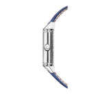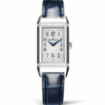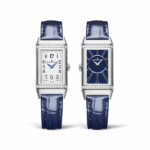 Elle doit son nom au concept Duetto, qui délivre sur une simple pression du doigt ses deux visages et son double jeu d’aiguilles animé par un seul et même mouvement. De bleu et d’acier, la nouvelle Reverso One Duetto se caractérise également par les deux rangs de diamants taille brillant blottis au recto et au verso de la montre. Son nouveau bracelet en cuir bleu brillant vient compléter ce bel ensemble d’inspiration Art déco.