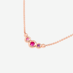 Collier Bollicine en or rose 9 K avec 1 saphir rose (0,03 ct), 1 rubis (0,08 ct) et 1 améthyste (0,01 ct).