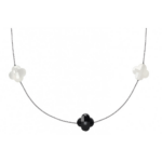 Sautoir, Onyx, Agate Blanche, Or Blanc