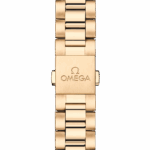 La montre est présentée sur un bracelet en or Moonshine™ 18K intégré aux superbes maillons arrondis polis et satinés. Fermé par une boucle déployante papillon, il présente le système de réglage confort d’OMEGA.