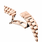 La montre est présentée sur un bracelet en or Sedna™ 18K intégré aux superbes maillons arrondis polis et satinés. Fermé par une boucle déployante papillon, il présente le système de réglage confort d’OMEGA.