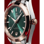 Son cadran laqué soleillé vert sapin arbore un guichet de date circulaire à 6 heures et 11 index en forme de coque de bateau. Les aiguilles facettées redessinées, dont celle des minutes à la pointe délicatement affinée, ainsi que l’ensemble des éléments appliqués sont façonnés en or Sedna™ 18K. Les index et les aiguilles sont également revêtus de Super-LumiNova blanc émettant une lueur bleue.