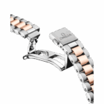 La montre est présentée sur un bracelet en acier inoxydable et or Sedna™ 18K intégré aux superbes maillons arrondis polis et satinés. Fermé par une boucle déployante papillon, il présente le système de réglage confort d’OMEGA.