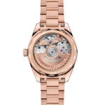 Fond transparent : Un fond transparent, souvent en saphir, permet de voir le mouvement à l’intérieur de la montre.