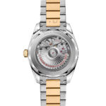 Ce modèle de 38 mm est doté d'un boîtier symétrique en acier inoxydable et en or Moonshine™ 18K et d'un fond de boîte vissé orné d'un motif alvéolé.