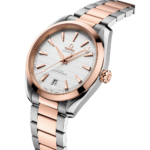 Le cadran soleillé argenté arbore un motif « teck » horizontal inspiré du pont en bois des yachts de luxe, élément signature caractéristique de ces modèles.