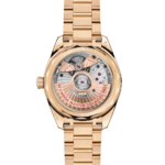 Ce modèle de 34 mm est doté d'un boîtier symétrique en or Moonshine™ 18K et d'un fond de boîte vissé orné d'un motif alvéolé.
