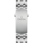 La montre est présentée sur un bracelet en acier inoxydable et entraînée par le calibre OMEGA Master Chronometer 8800, que l’on peut admirer à travers le fond en verre saphir à bords ondulés.