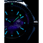 Ce modèle de 45,5 mm est doté d'un boîtier et d'un bracelet en O-MEGASTEEL robuste et d'un cadran extraordinaire qui rend hommage aux mystères des profondeurs. Son motif est une représentation précise du fond du Challenger Deep, le point le plus profond de la fosse des Mariannes, cartographié par les membres de l’expédition Five Deeps à l'aide de près d'un million de points sonar. Sa finition laquée, obtenue en laissant couler un océan de laque sur le cadran, donne une superbe impression de profondeur. Le cadran affiche un côté ludique. Une lumière UV révèle les mots « OMEGA WAS HERE », pointant vers le record mondial de plongée de 10 935 mètres et montrant les bassins occidental, central et oriental.