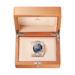 Ce modèle est pourvu d’un verre saphir inrayable et d’un cadran en céramique bleue doté de chiffres arabes et d’un guichet de date à 6 heures. Le cadran est pourvu d'une petite seconde ainsi que des compteurs 60 minutes et 12 heures pour une lecture intuitive du temps écoulé. La lunette de plongée tournante unidirectionnelle en céramique bleue, avec une échelle de plongée en Ceragold™ OMEGA, est montée sur un boîtier de 45,5 mm en or Sedna™ 18K et acier inoxydable.