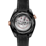Son boîtier brillant et satiné a été façonné à partir d'un unique bloc de céramique et la lunette en or Sedna™ 18K est cerclée d'une bague en céramique avec échelle de plongée en Ceragold™. On retrouve l'or Sedna™ 18K sur la couronne et la valve à hélium, ainsi que sur les aiguilles et les index revêtus de Super-LumiNova blanc. Le cadran en céramique noire est pourvu d'une lunette GMT et de chiffres arabes en or Sedna™ 18K. OMEGA a créé le premier fond orienté sur lequel les inscriptions gravées restent toujours parfaitement en position grâce à la nouvelle céramique brevetée Naiad Lock d'OMEGA.