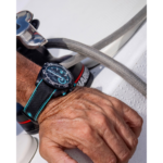 Le boîtier en céramique noire est complété par une lunette unidirectionnelle en céramique noire satinée ornée d’une échelle de plongée en émail blanc et d’un point entouré d’un triangle à 12 heures, revêtu de Super-LumiNova émettant une lueur verte dans l’obscurité.