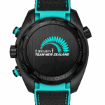En hommage à l’équipage néo-zélandais, le fond de boîtier NAIAD LOCK arbore un logo Emirates Team New Zealand agrémenté d’une fougère turquoise et d’une inscription blanche. Entraînée par le calibre OMEGA Master Chronometer 9900, cette montre au caractère nautique repose sur un bracelet en caoutchouc noir et turquoise structuré, orné d’un fermoir en céramique noire et surpiqué de turquoise.