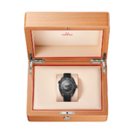 La partie extérieure du cadran est de couleur noir DLC avec un motif en nid d’abeille poli et gravé au laser. Elle comprend des index satinés au diamant et revêtus de Super-LumiNova gris, ainsi qu’un anneau extérieur en vernis gris. Diverses destinations mondiales entourent le cadran et son anneau extérieur, notamment la ville de Bienne, siège d’OMEGA, tandis que les aiguilles revêtues de PVD gris sont également revêtues de Super-LumiNova gris.