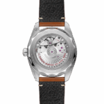Le boîtier symétrique de 38 mm, poli et satiné, est monté sur un bracelet en cuir Novonappa brun doré. Reprenant la lisibilité remarquable de la Railmaster originale, le cadran beige est orné d’un dégradé noir ainsi que de grands chiffres et index revêtus de Super-LumiNova vintage. On retrouve également un affichage de la petite seconde à 6 heures, à travers une aiguille beige vernie.