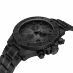 Powered by a Swiss quartz chronograph movement, it features a watersport bezel, screw-down crown and case back, and chronograph sub-dials for precise timing. Luminescent hands and markers ensure legibility in low-light conditions.