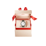 Le cadran argenté et opalin arbore des compteurs ovales horizontaux et un guichet de date ovale vertical à 6 heures. Les index en or jaune 18K côtoient les aiguilles en or jaune 18K ou vernies de vert.