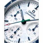D’autres détails attirent le regard, comme l’aiguille centrale des secondes, avec son dégradé de rouge, bleu et vert, ainsi que la typographie bleu foncé de Milano Cortina qui apparaît dans le guichet de date. Sur le fond de boîte, OMEGA a apposé un médaillon estampillé Milano Cortina 2026.